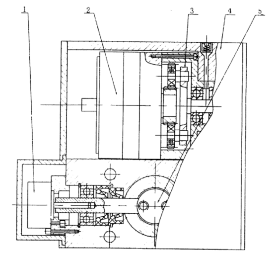 圖七 DPF電動(dòng)排水閥部件示意力圖 1、電位器 2、力矩電機(jī) 3、行星副 4、殼體 5、蝶閥